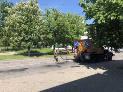 Поставили столбики дорожного ограждения. Отчитались. Сняли столбики