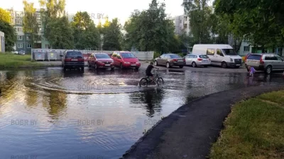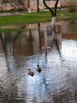 На территории садика из-за дождей образовалось озеро