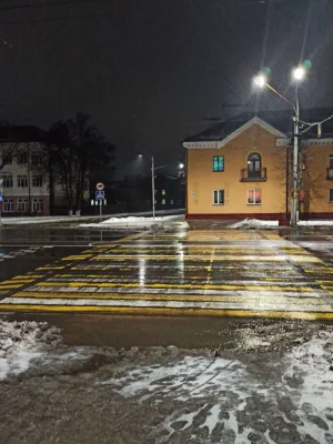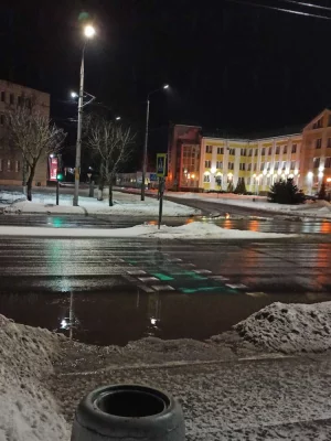 Зимний квест "перепрыгни лужу на пешеходном переходе"