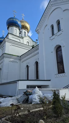 А красиво без забора. Ещё немножко допилят площадку и красота Но интересует странная труба перед храмом. Так и будет, что ли?