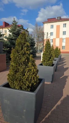 На площади Ленина возле горисполкома установили зелёные насаждения в клумбах