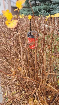 Довольный оригинальная инсталляция, художественная инсталляция называется подставка для кофе в кусте.