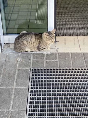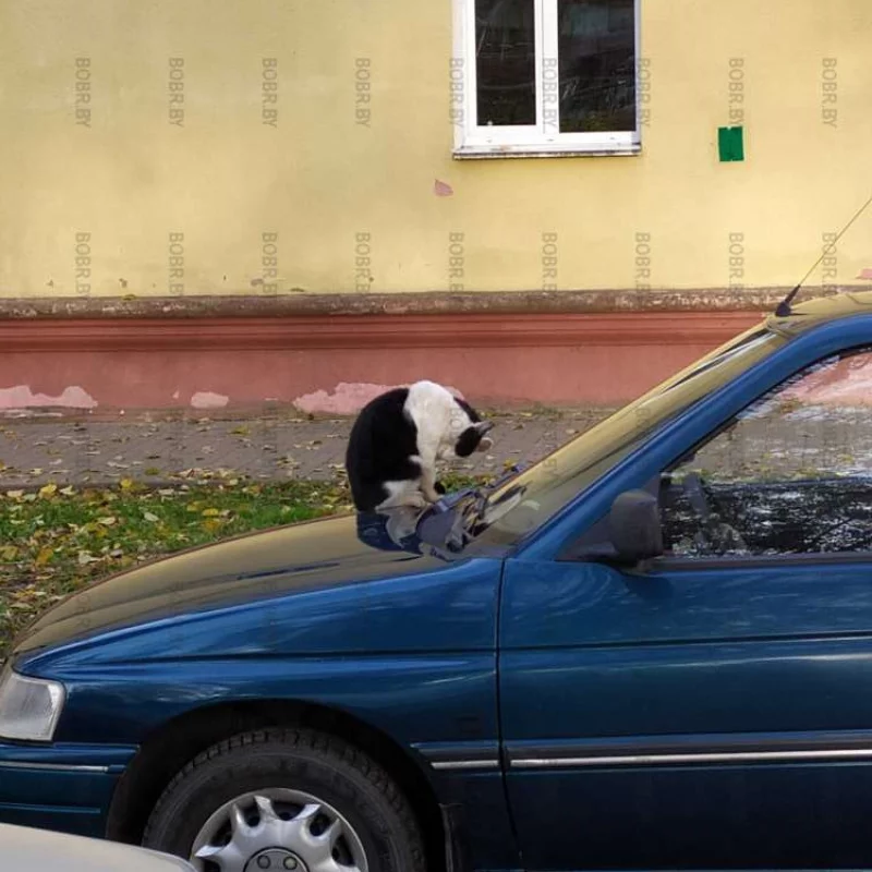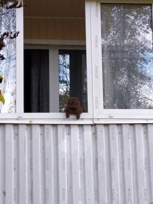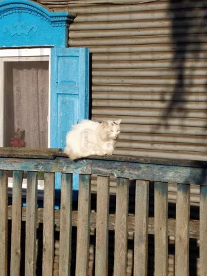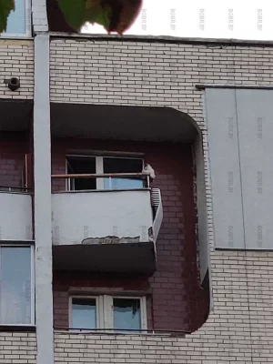 Кошка экстремал, сидит на седьмом этаже и не боится, наверное у неё суровые хозяева?