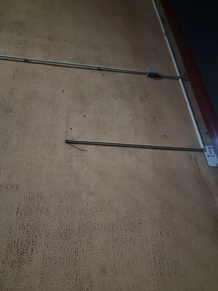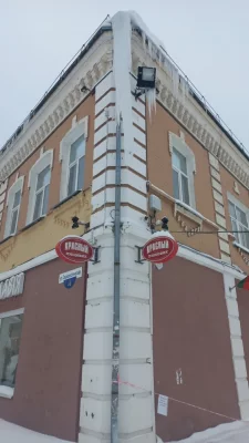А здесь вообще табличку с номером дома убрали, остался только на стене её контур, дырки от крепежа и торчащий провод...