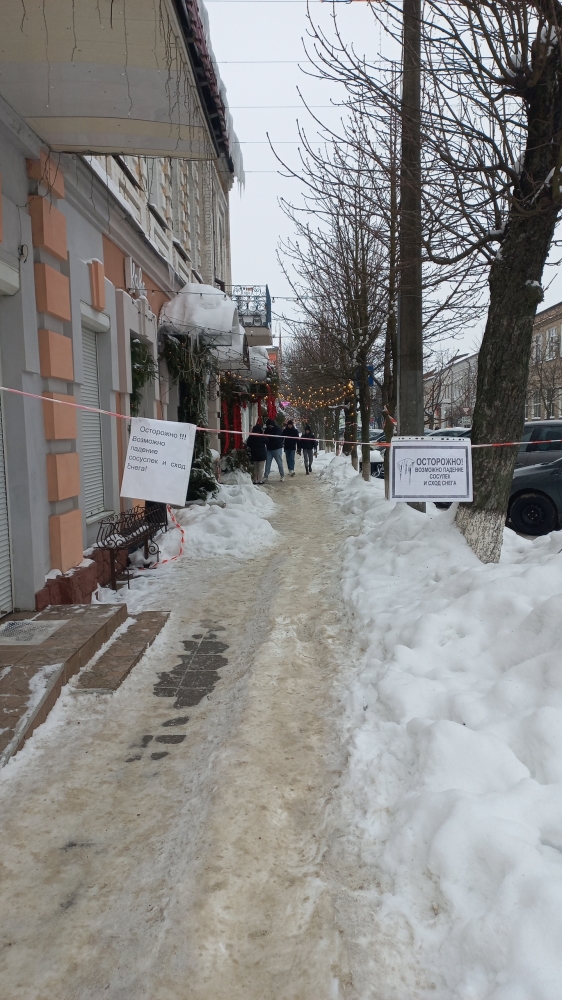 Конечно легче повесить бумажку, чем обеспечить удаление угрозы с крыши. но бумажка успешно оберегает крепкий сон "ответственных лиц"