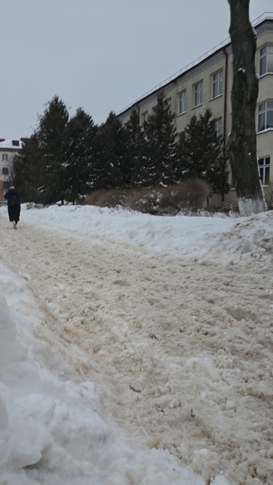 Почему бы не попросить школьников двадцать седьмой школы чтобы они хотя бы убрали снег возле своей школы?