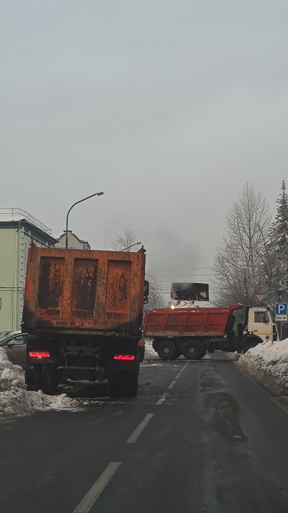 Работы по расчистке города от снега идут полным ходом. только вот незадача что снегопад был месяц назад