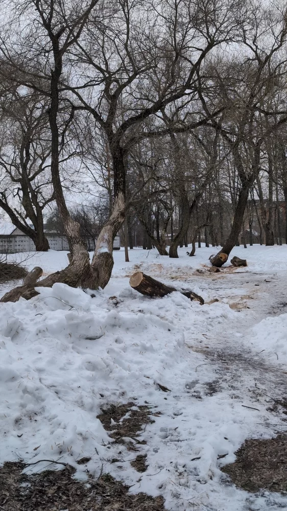 В горпарке спилили стелющиеся ветлы рядом с прудами