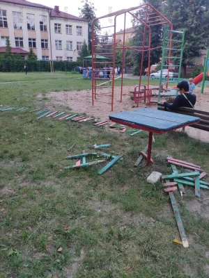 Детская площадка была обнесена забором, забор сломался а у детей игрушек нету И они играются сломанным забором. Вопрос, когда жеу построит забор? Ломать не строить!