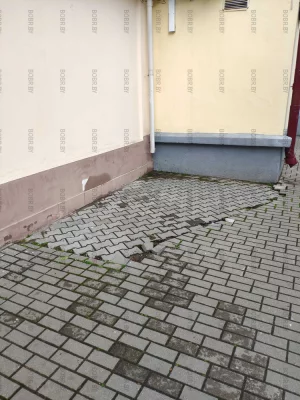 Неэстетично выложенная тротуарная плитка, прямо напротив горисполкома.