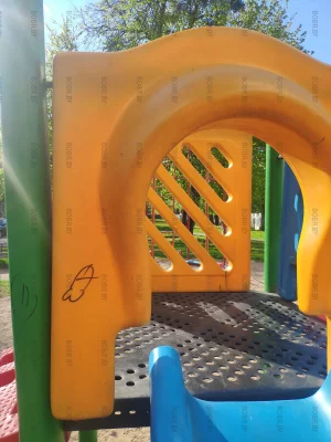 Одна из стрит-арт работ художника бэнкси на детской игровой площадке