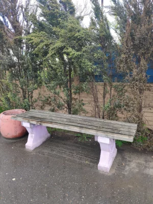 Если эта деревянную скамейку покрасят, она прослужит раз в 10 дольше. Но очевидно, денег на краску нет.