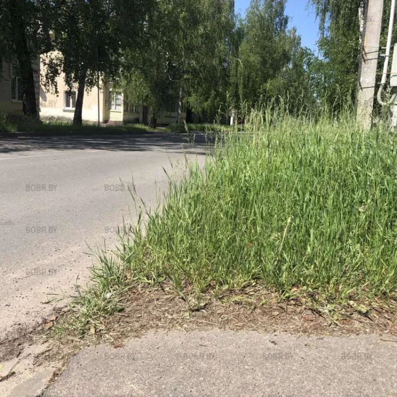 Очень аккуратно подстриженный газон на перекрёстке улиц Октябрьской и Пролетарской, зеленхоз работает на 100%.