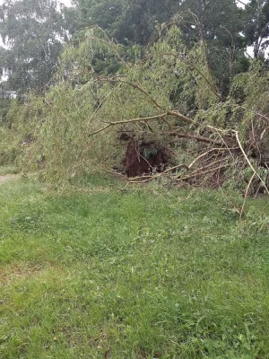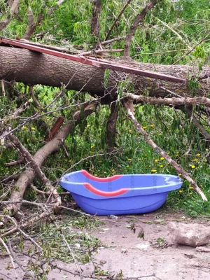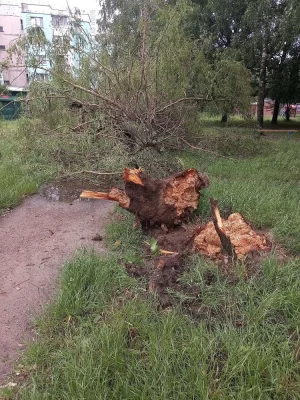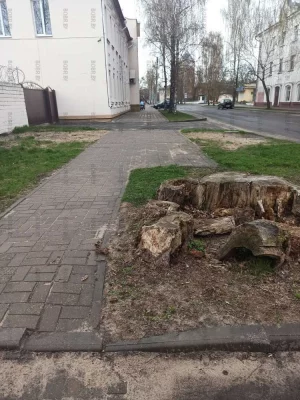 Дерево уже неделю лежит на тропинке, ведущей к поликлинике. Уже и тазик появился, и рама от двери