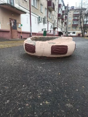А ну-ка признавайтесь, кто откусил кусок клумбы? Неужели нельзя в районе площади Ленина во дворе дома поставить красивую новую клумбу?