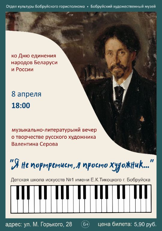 Вечер посвящён творчеству Валентина Серова (1865 - 1911), одного из наиболее значимых русских художников рубежа XIX–XX веков, чье творчество стало связующим звеном между классическим реализмом и новыми течениями, такими как импрессионизм и модерн.